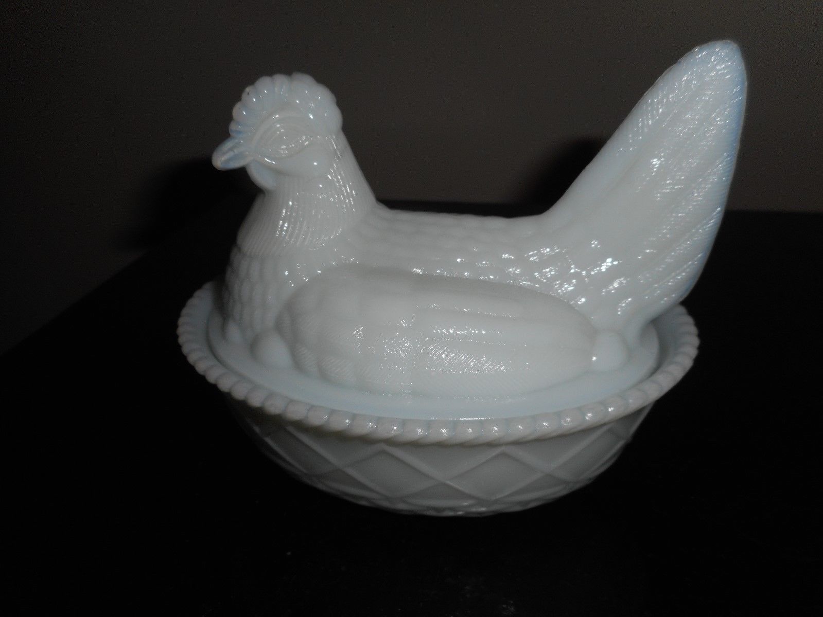 Title (ebay affiliate link): VINTAGE MILK GLASS WESTMORELAND HEN ON A NEST COVERED DISH CHICKEN