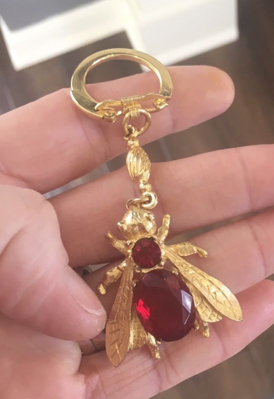 Title (ebay affiliate link): Vintage Key Gold Tone Bug Fly Bee Insect Red Cab Ring Chain Car FOB LARGE Hornet