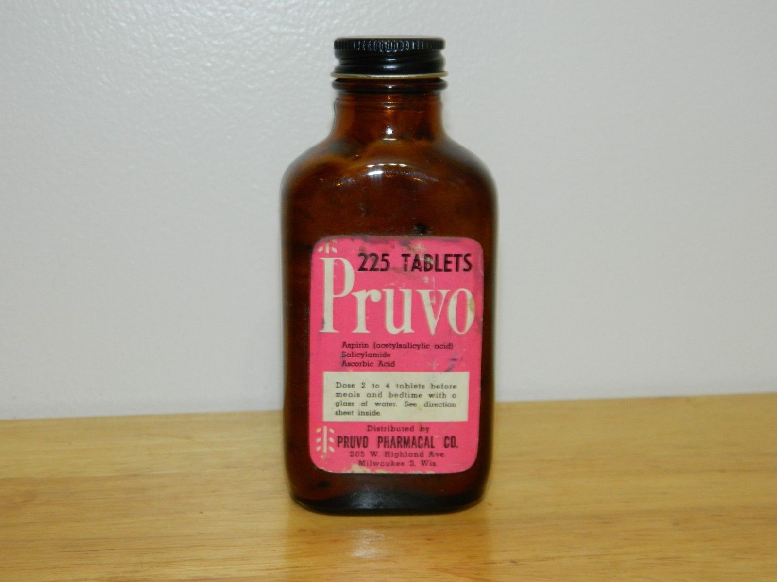 Title (ebay affiliate link): Vtg Drugstore Pharmacy Medicine Glass Bottle - 225 Tablets Pruvo Pharmacal Co.