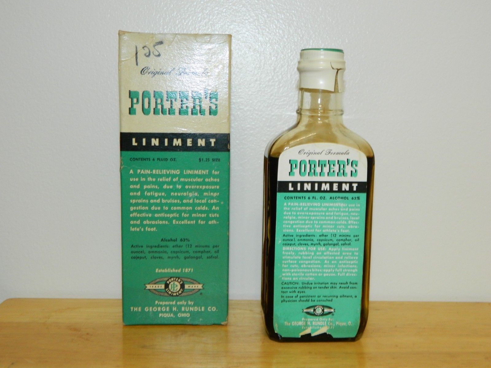 Title (ebay affiliate link): Vtg Drugstore Pharmacy Medicine Glass Bottle Porters Liniment George H Rundle co