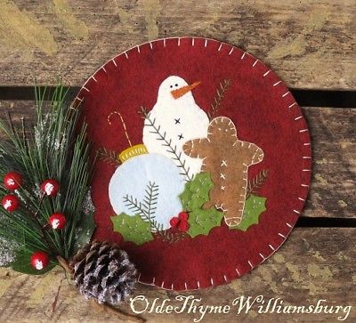 Primitive Stitchery CHRISTMAS Gingerbread & Snowman Penny Rug ~Winter Candle Mat