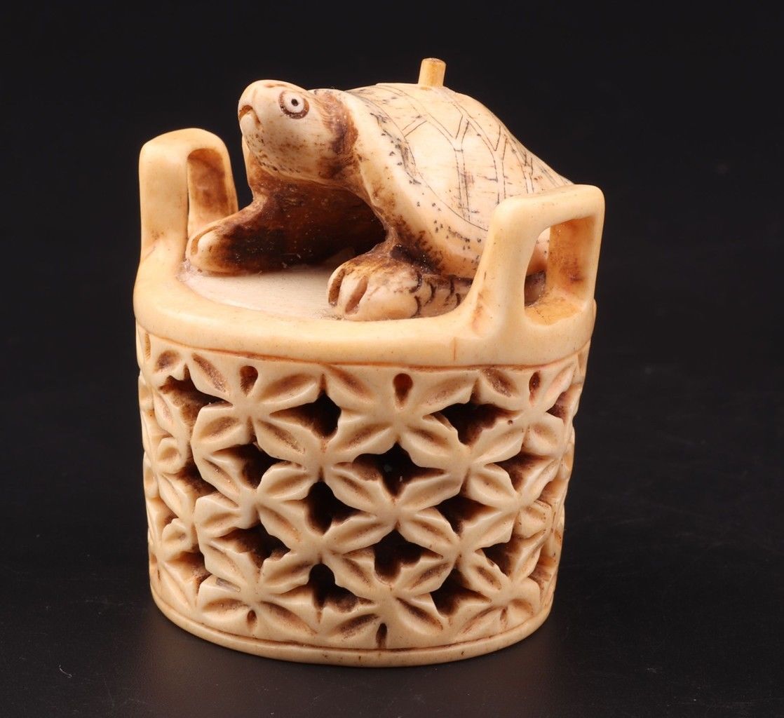 Title (ebay affiliate link): Vintage Chinese Cattle Bone Jewelry Box Old Hand-Carved Tortoise Basket Ornament
