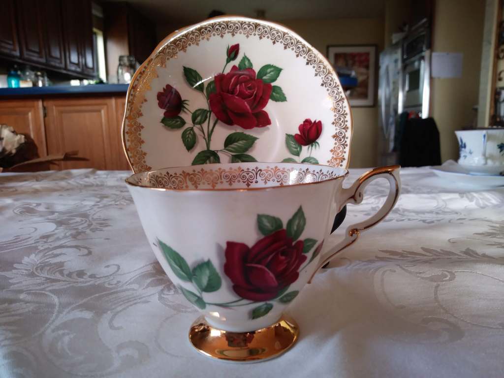 Title (ebay affiliate link): Vintage "Red Velvet" Tea Cup & Saucer - Royal Standard Fine Bone China England