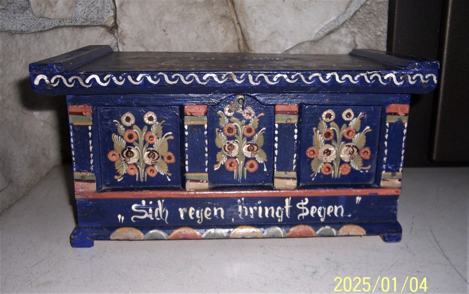 Title (ebay affiliate link): Vintage German Folk Art Box Hand Painted Casket with Adage Blue Floral