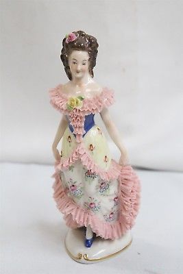 Old German Dresden Volkstadt Porcelain Lady Lace Flower Victorian Figurine