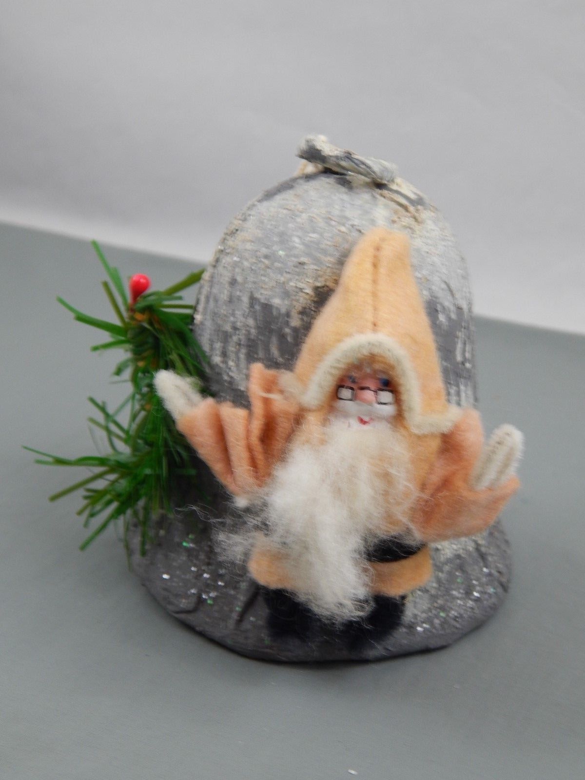 Vintage Antique Spun Cotton Paper Mache Santa Claus & Bell Christmas Ornament