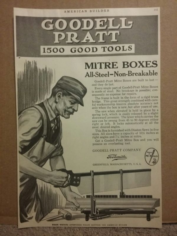 Title (ebay affiliate link): 1922 Goodell Pratt Mitre Boxes Saw Ad Greenfield, Massachusetts