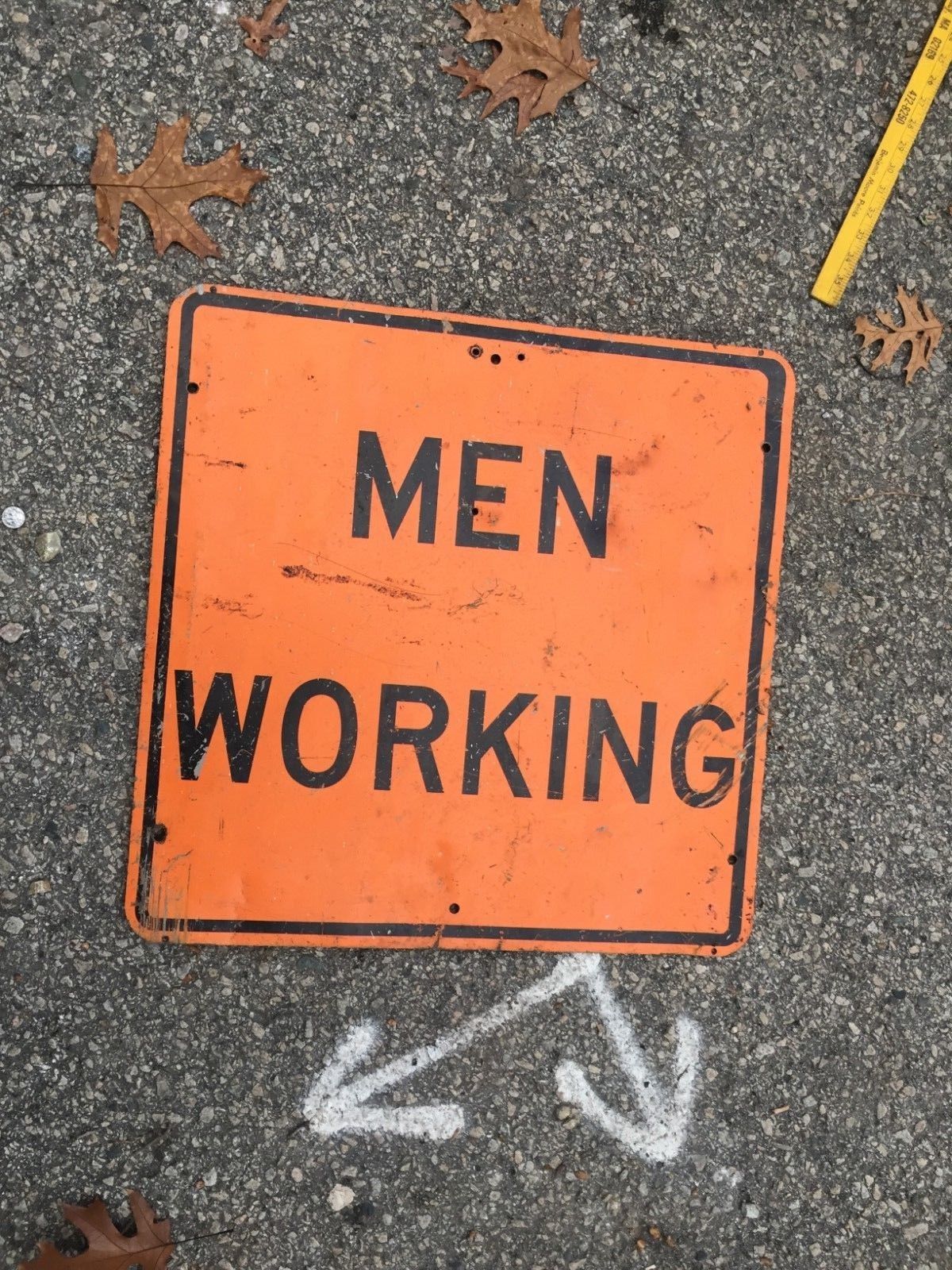 Vintage Men Working Sign Orange 24" x 25" Metal