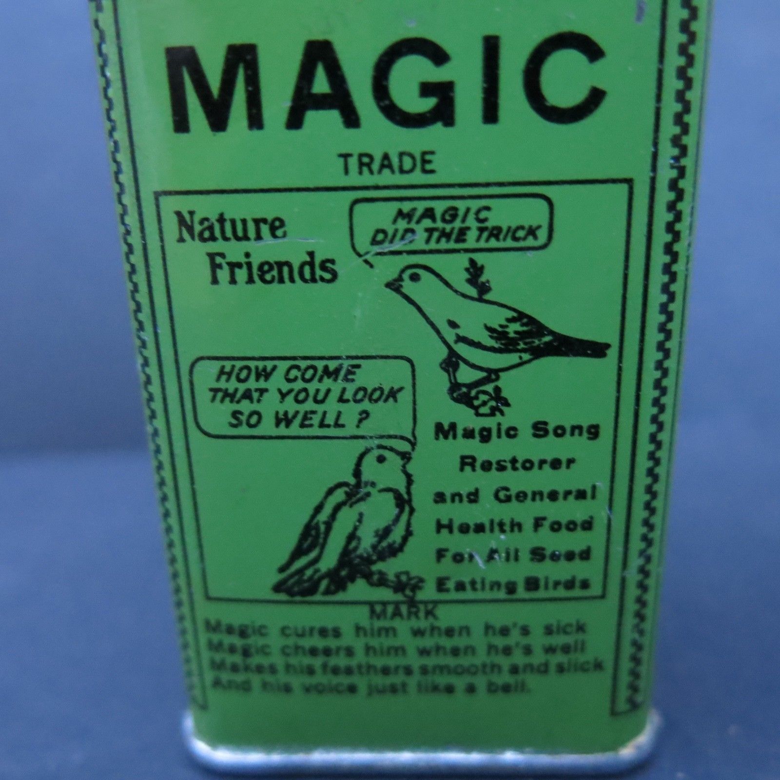 VINTAGE MAGIC BIRD SEED TIN -NATURES FRIEND