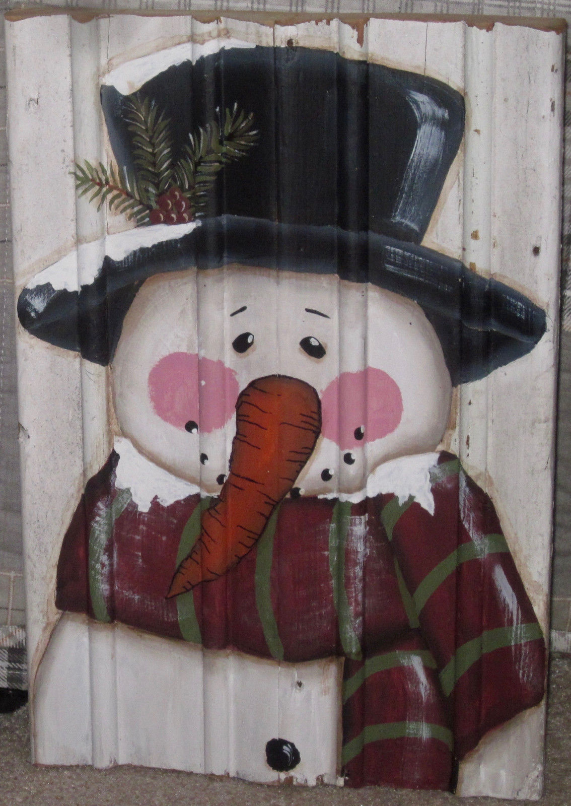 Title (ebay affiliate link): *~*PRIMITIVE*~* HP FOLK ART PRIM SNOWMEN *~* WINTER *~* OLD RECLAIMED WOOD