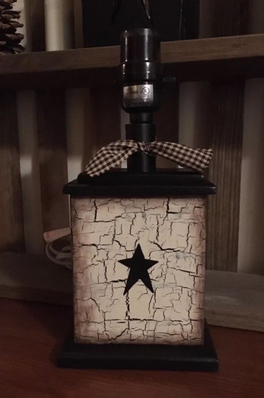 Title (ebay affiliate link): PRIMITIVE CRACKLE WOOD LAMP SHELF SITTER COUNTRY FARMHOUSE WINTER DECOR