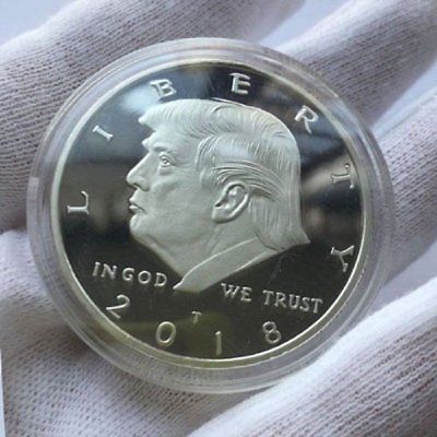 Title (ebay affiliate link): 2018 President Donald Trump Plated EAGLE Commemorative Coin 40mm Silver