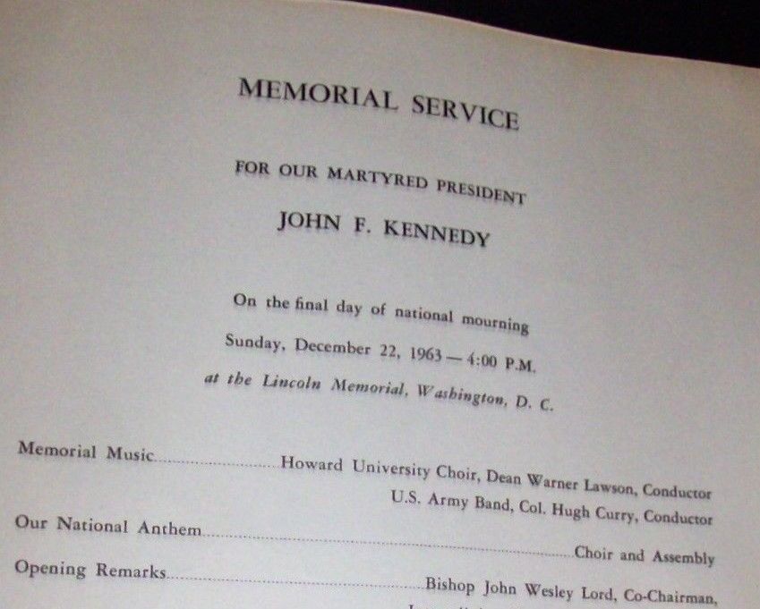 Title (ebay affiliate link): John F Kennedy Memorial Service Program December 22 1963 at the Lincoln Memorial
