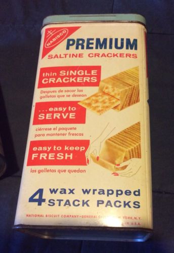 Title (ebay affiliate link): VINTAGE 1960s PREMIUM SALTINES CRACKERS TIN CAN CANISTER 14 OZ
