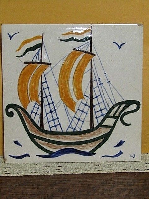 H & R Johnson Antique Nautical Ship Art Tile 6" x 6" Ceramic