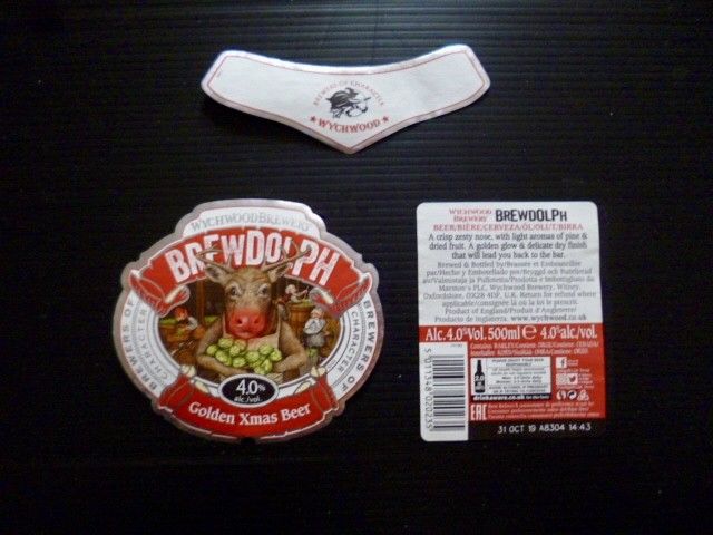 WYCHWOOD "BREWDOLPH" GOLDEN XMAS BEER 3 LABELS.