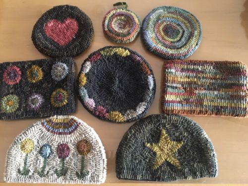 Title (ebay affiliate link): Lot Of 8 Small Hand Hooked Rug - Primitive Heart, Flowers, Pennies, Star, Stipes