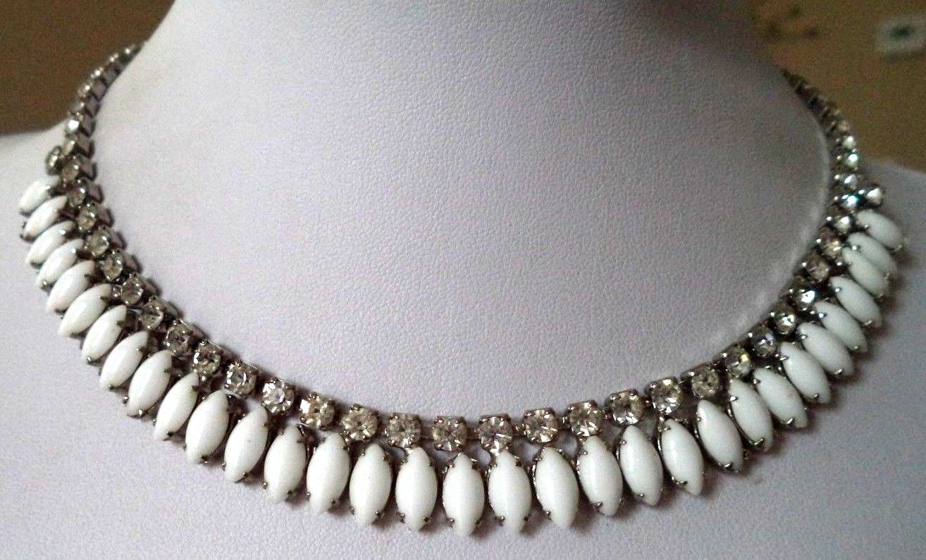 Title (ebay affiliate link): STUNNING VINTAGE ESTATE HIGH END MILK GLASS RHINESTONE 16 7/8" NECKLACE!!! G262V
