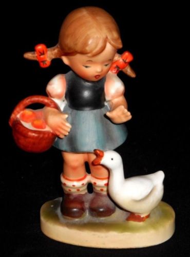 Title (ebay affiliate link): Vintage Hummel Style Figurine Little Girl Duck Swan Apple Basket Ceramic