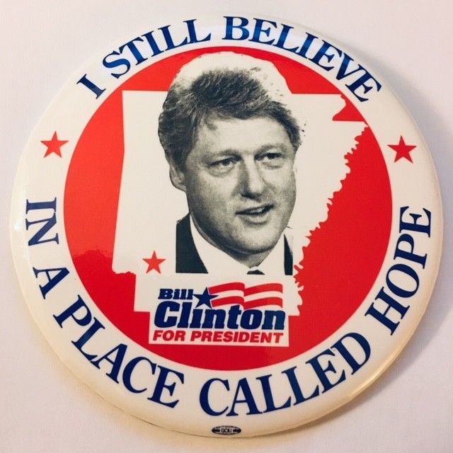 Title (ebay affiliate link): 3 1/2" Bill Clinton For President "I Still Believe In a Place Called Hope" Pin