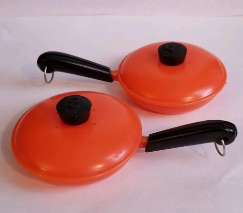 Title (ebay affiliate link): Antique Red Skillets with Lids, Salt and Pepper Shakers