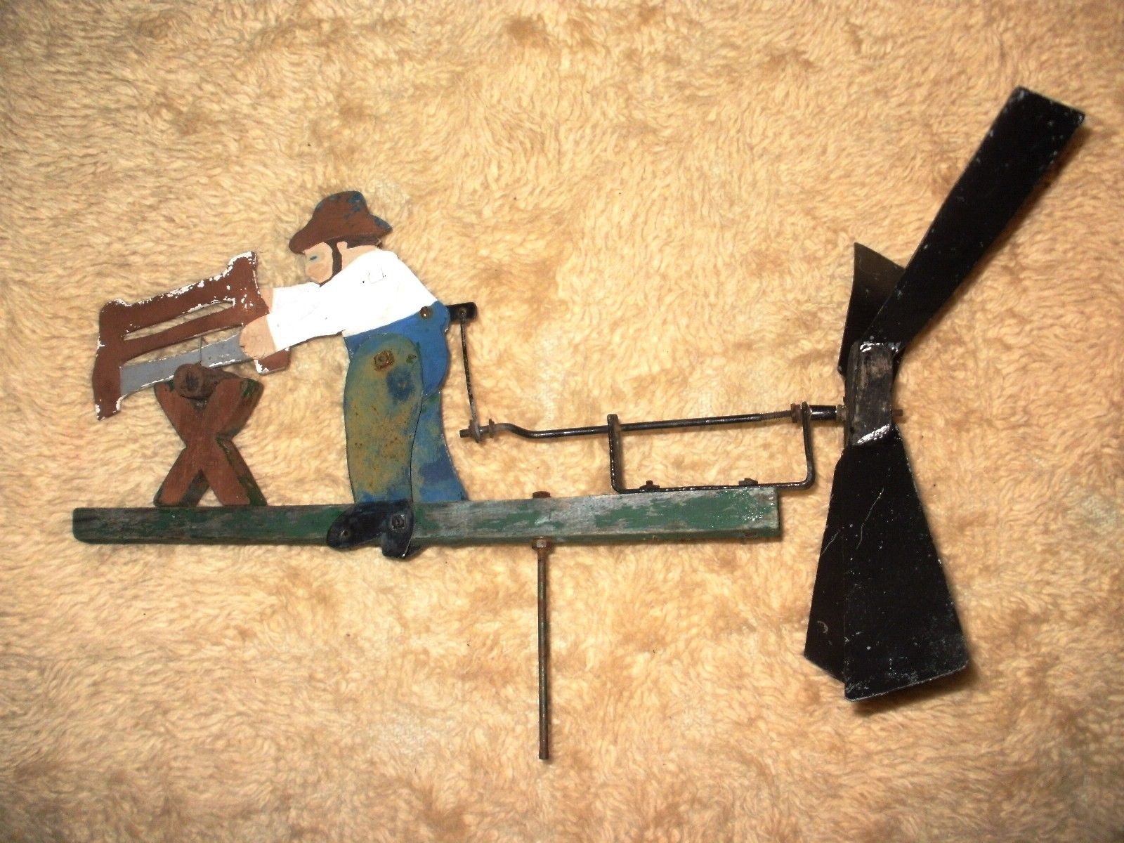 Title (ebay affiliate link): Antique Folk Art Wood Whirly Gig Whirligig Lumberjack Chopping Wood Windmill