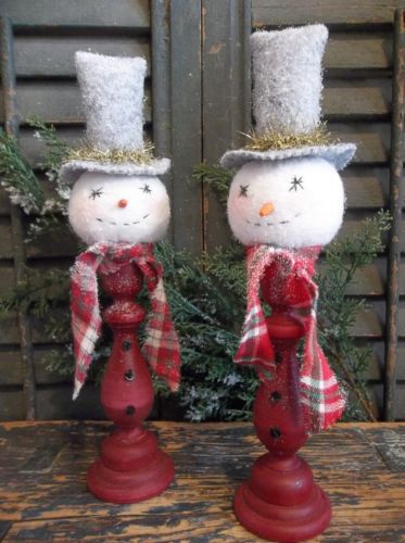 Title (ebay affiliate link): Pair of Primitive Handmade Candlestick Snowmen - Christmas/Winter Decoration