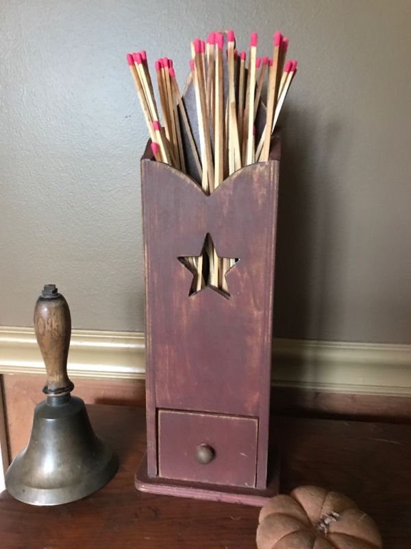 Title (ebay affiliate link): Primitive Pipe Box- One Drawer Box- Maroon- old red- Colonial Decor Christmas