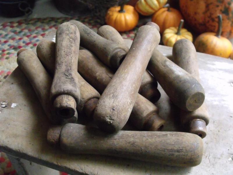 Title (ebay affiliate link): Lot of 10 Primitive Antique or Vintage Turned Wood Tool Handles Bowl Fillers