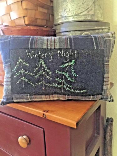 Title (ebay affiliate link): Primitive Stitchery Christmas Vintage Wool Shelf Tuck Ornie Wintery Night