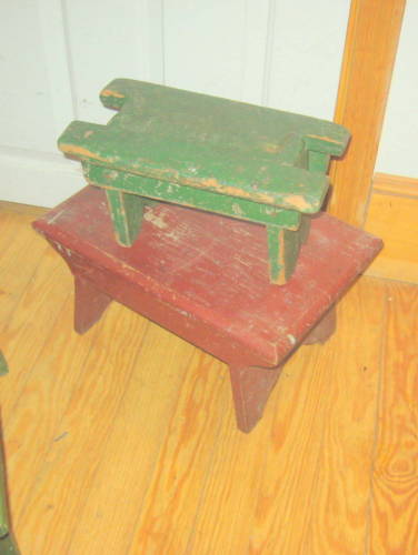 CHARMING OLD PRIMITIVE BENCH AWESOME FORM, SIZE, MUTED BARN RED PAINT AAFA NR