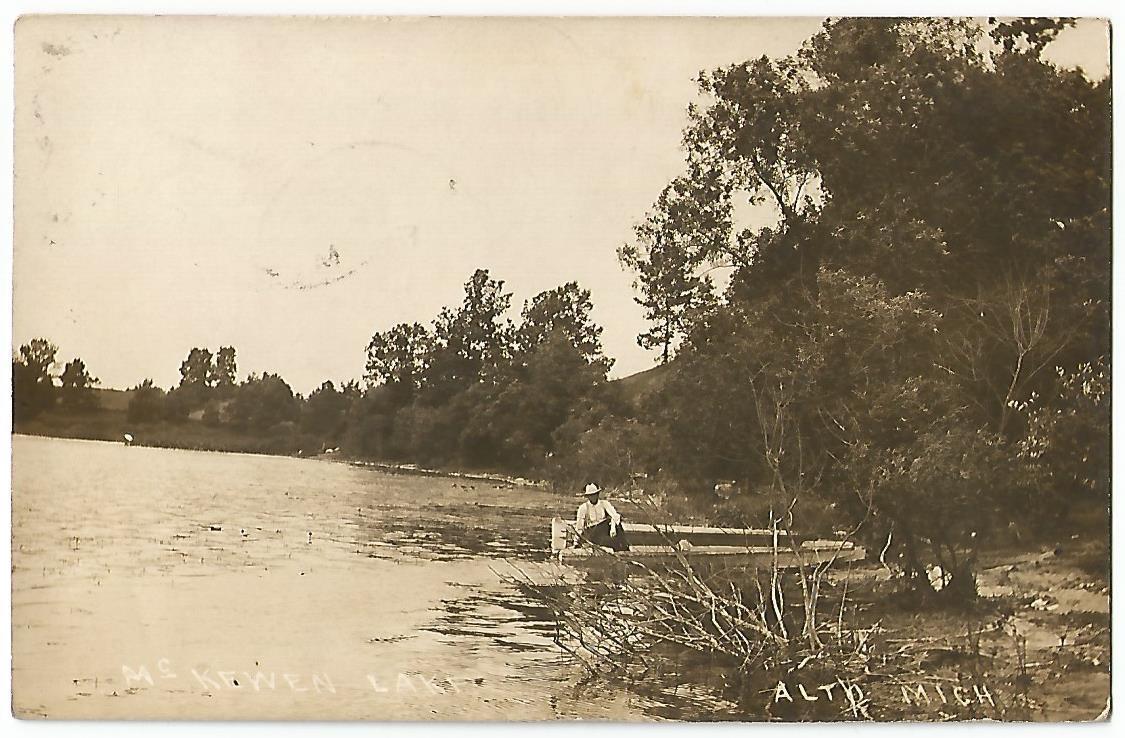 Title (ebay affiliate link): Alto Michigan MICH MI (Kent County) Man In Boat On McKewen Lake ~ RPPC 19112