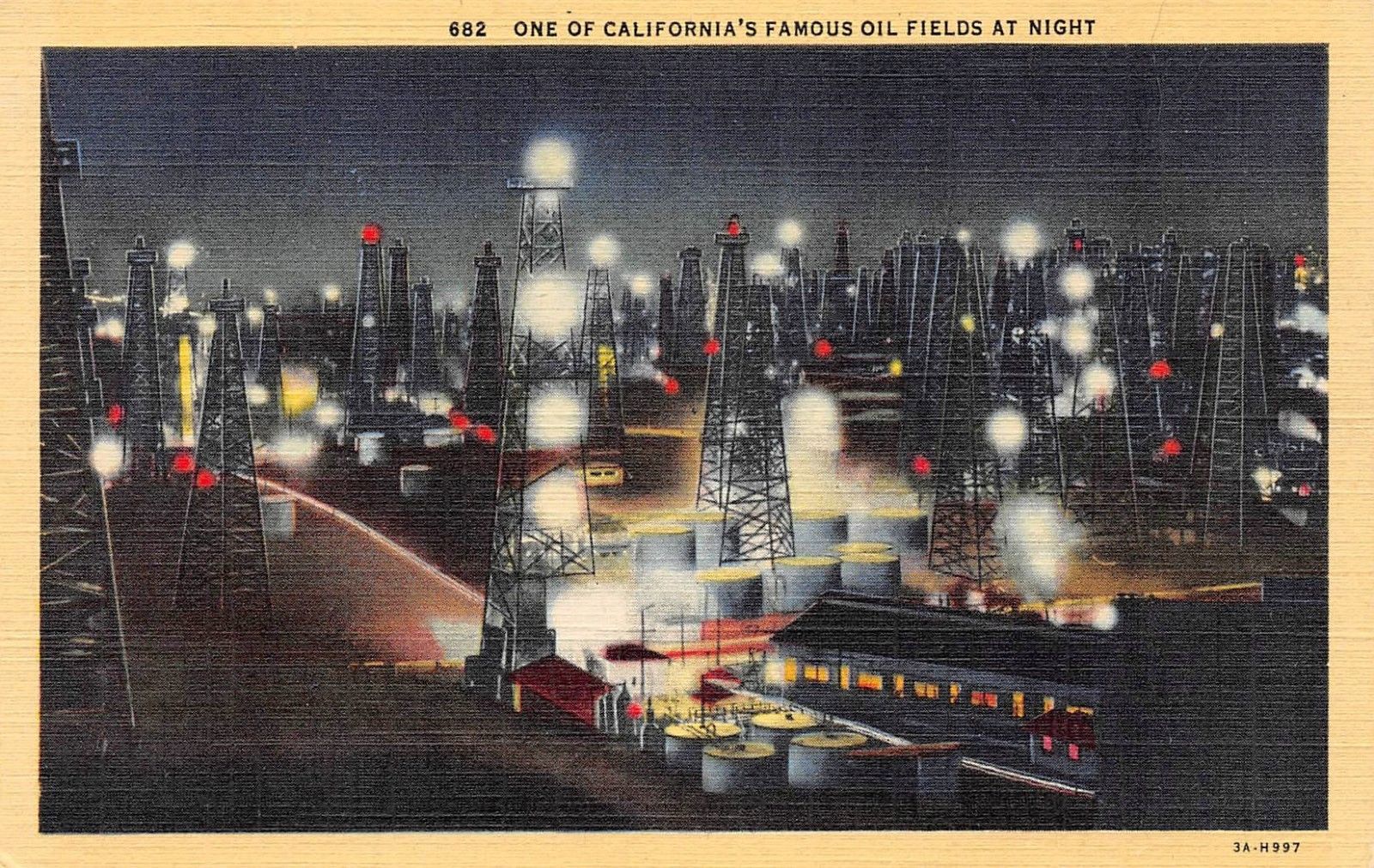 Title (ebay affiliate link): C0320 One of California''s Famous Oil Fields at Night - 1933 Teich Linen Postcard