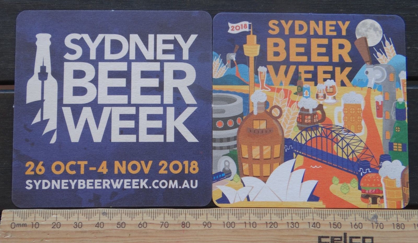 1 x 2018 SYDNEY BEER WEEK 26 OCT - 04 NOV AUSTRALIA BEER COASTERS