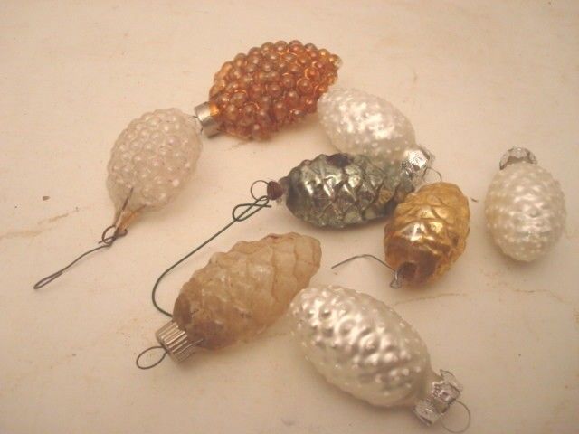 8 Antique CHRISTMAS Pinecone glass ornaments