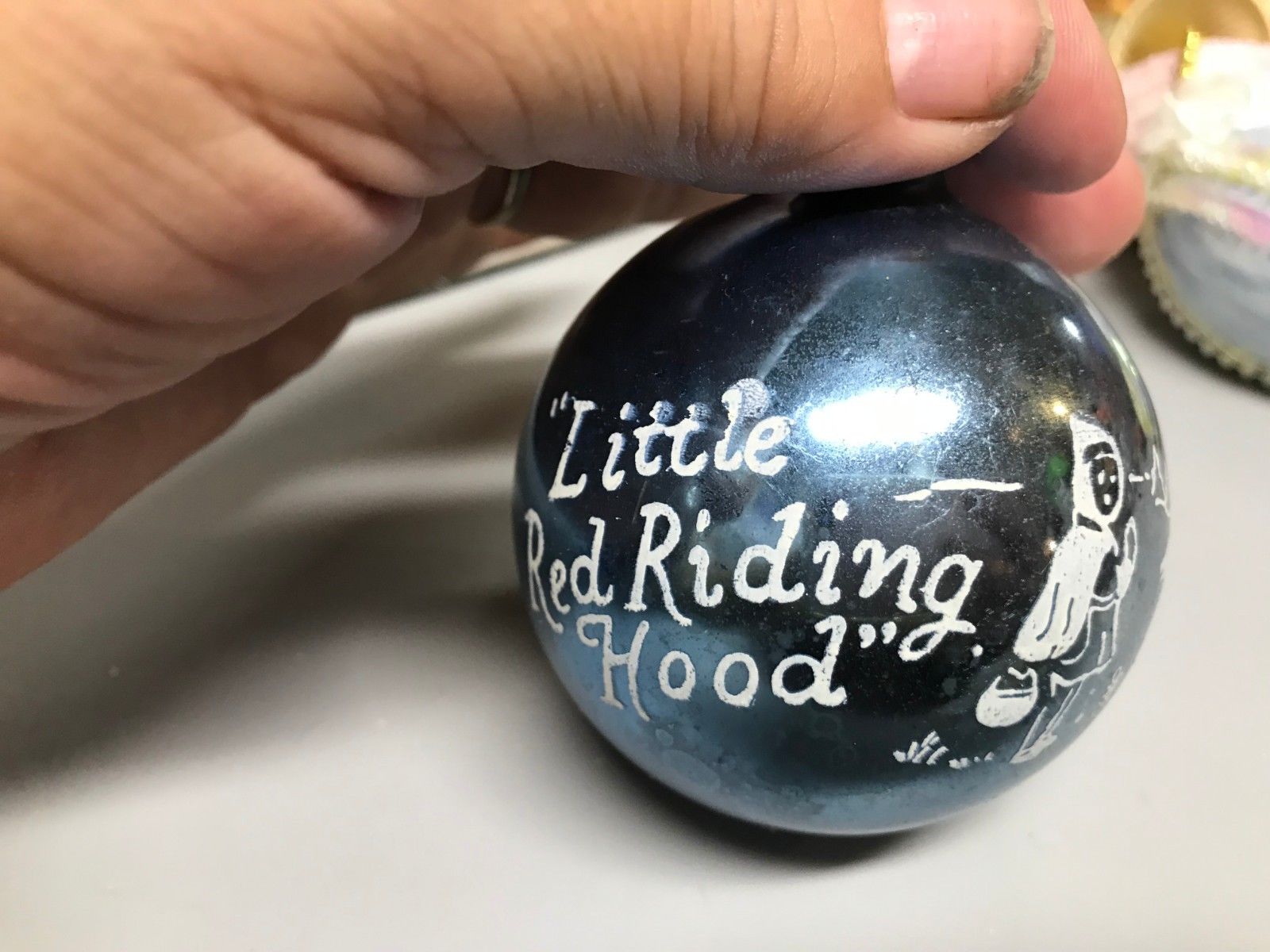 Title (ebay affiliate link): Vintage Mercury Glass Ball Christmas Ornament "Little Red Riding Hood" Stenciled