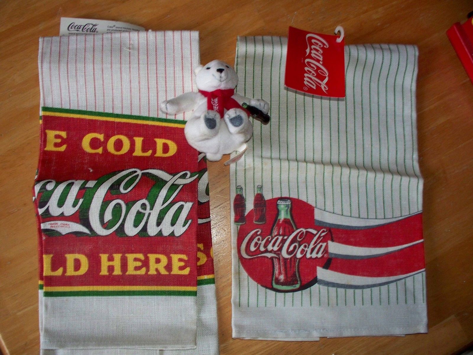 Title (ebay affiliate link): Coca-Cola Dish Towels (2) and small Coca-Cola Polar Plush