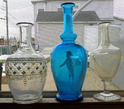 Lot of 3 Nice Open Pontil Spirits Bottle Decanter Mary Gregory Barber Flared Lip
