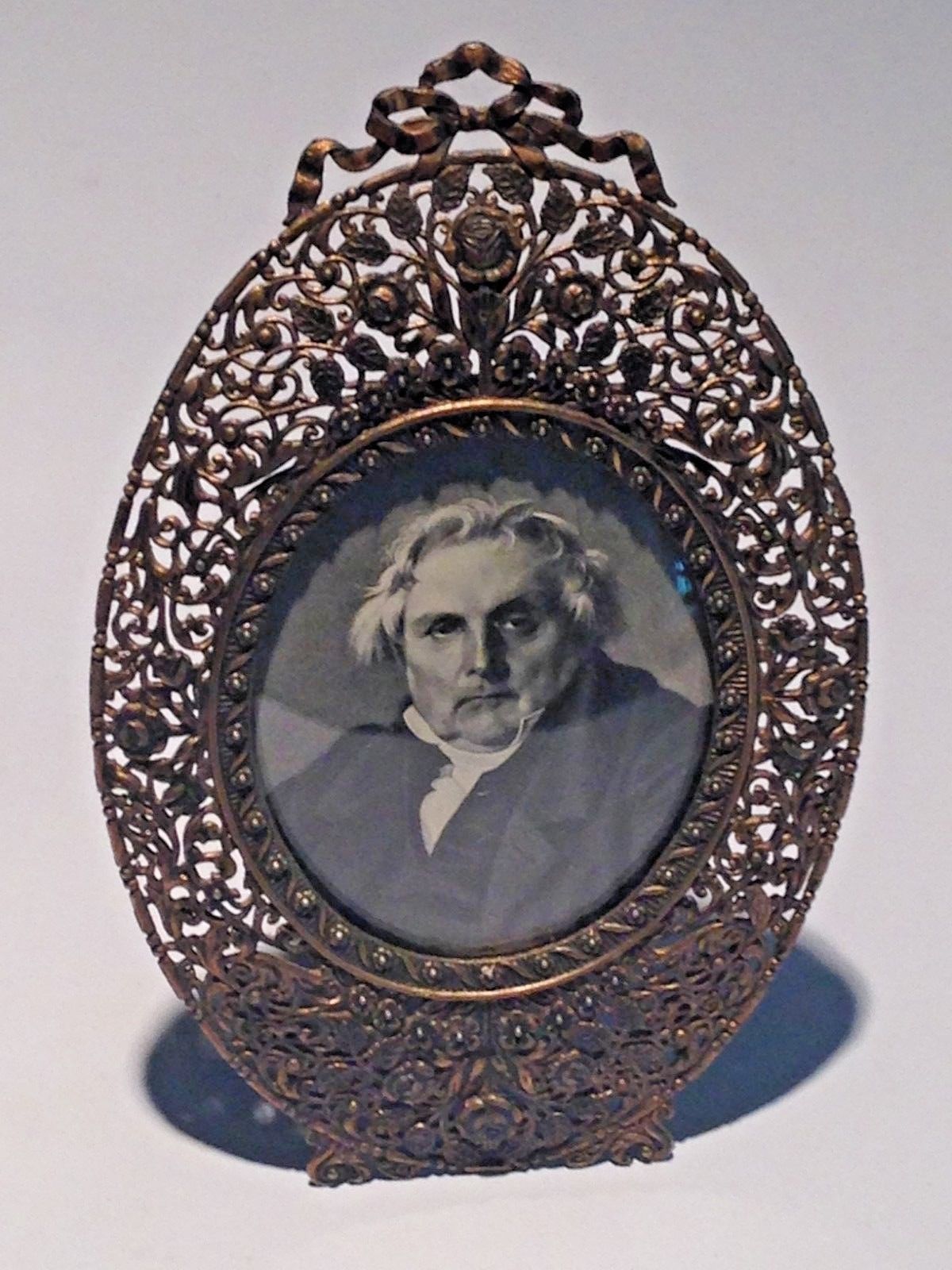 Vintage Pierced Metal domed glass easel Frame