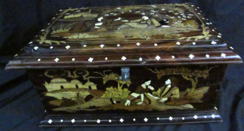 Old wooden Chest W/ Hand Carved Inlay (650)