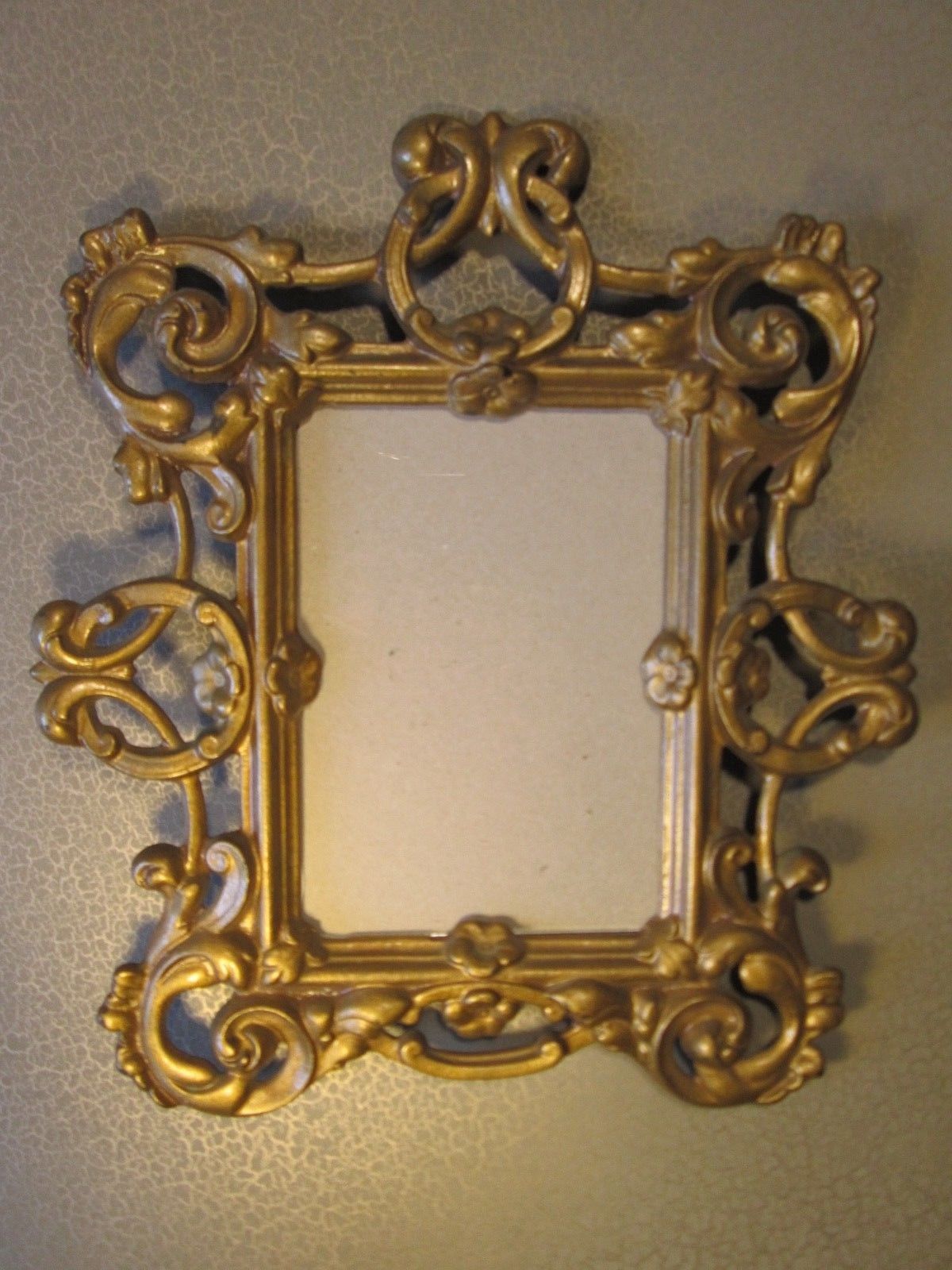 VINTAGE PICTURE FRAME CAST IRON METAL ORNATE GOLD 4X6 ITALY