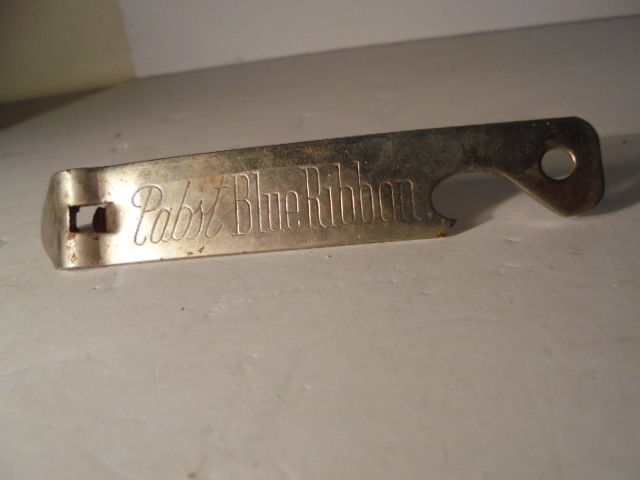 Title (ebay affiliate link): Vintage Pabst Blue Ribbon Beer Bottle Opener with Keychain Hole Rare Promotional