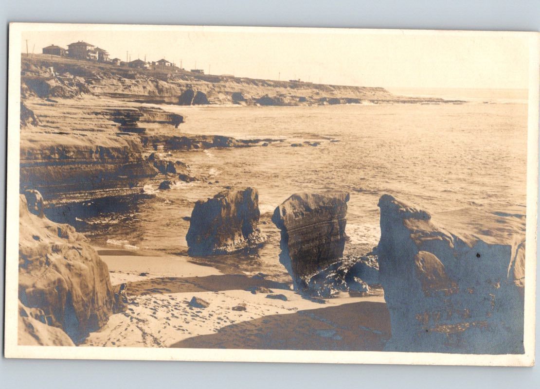 LEOPOLD HUGO La Jolla RPPC California real photo POSTCARD homes on ocean BLUFF
