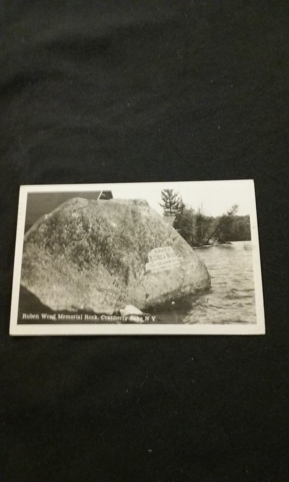 Title (ebay affiliate link): Ruben Wood Memorial Rock Cranberry Lake New York Vintage Black & White Postcard