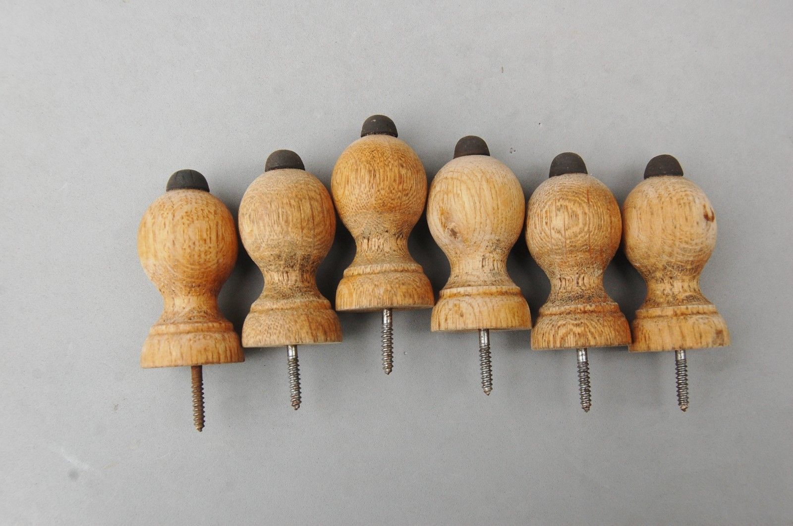 Title (ebay affiliate link): 6 Turned Wood Door Stop Screw Ball Rubber Tip 2 3/4" x 1 1/2" diam Salvage