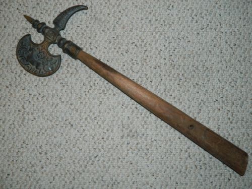 Title (ebay affiliate link): Vintage 21" Long Rustic Antique Ornate Style Hatchet with Wood Handle