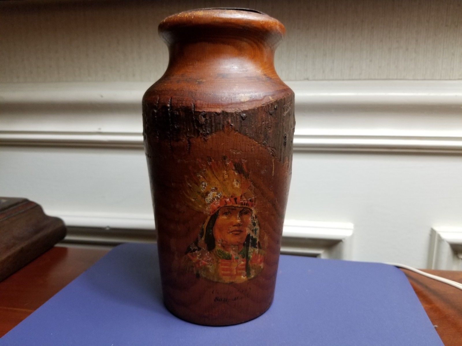 Title (ebay affiliate link): Wooden Vase Decal Souvenir, CABIN ART. Camp rustic Americana folk
