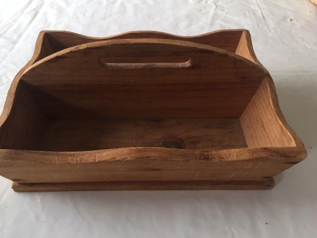 Title (ebay affiliate link): Antique Primitive Wood Utensil Carrier Holder Handle Spoons Forks Knives