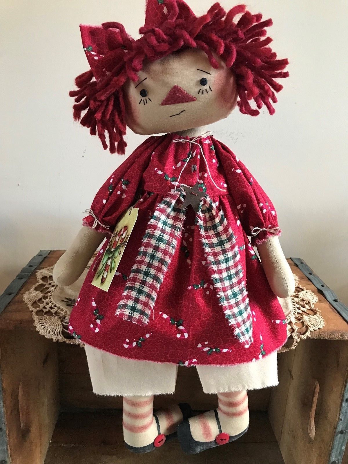 Title (ebay affiliate link): Primitive Raggedy Annie Winter Candy Cane Annie