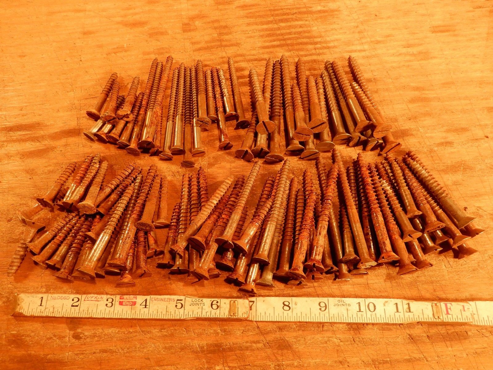 Title (ebay affiliate link): Lot antique wood screws 108 LARGE RAW STEEL flat head slotted furniture fastener